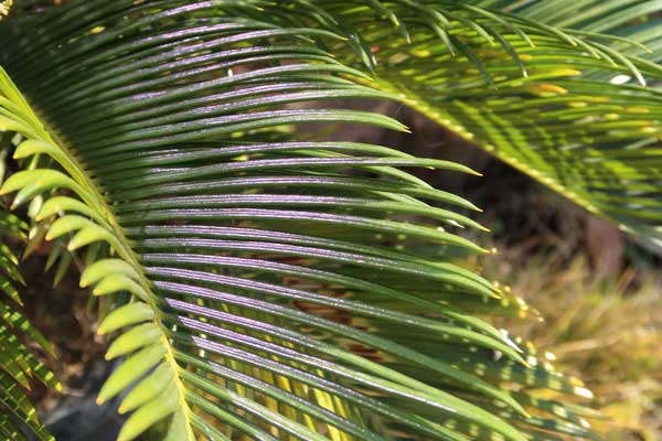 ちょっとビックリ、ソテツの葉が反射してビロードのような光沢を放っています。